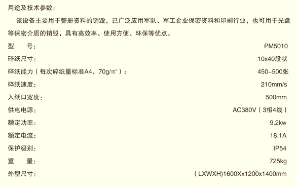中國(guó)國(guó)家保密局認(rèn)證 工業(yè)碎紙機(jī) YD-PM-5010 粉碎500張