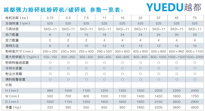 粉碎能力(kg/h) | 30-80 | 50-120 | 100-250 | 150-350 | 200-350 |