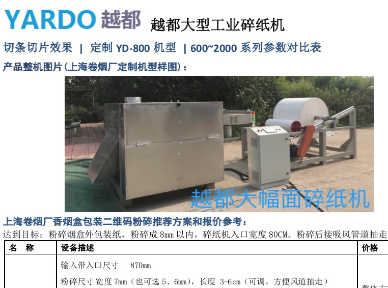 越都大幅面大型木質(zhì)纖維分條切斷機(jī) YD-GD1200機(jī)型 定制木質(zhì)纖維素粉碎切條 切片越都YD-800機(jī)型大幅面碎紙機(jī) 800mm寬度以上的卷筒紙粉碎 卷煙廠煙包材料粉碎越都大幅面大型工業(yè)碎紙機(jī) 輸送帶進(jìn)料 卷筒紙物料粉碎 YD-800機(jī)型