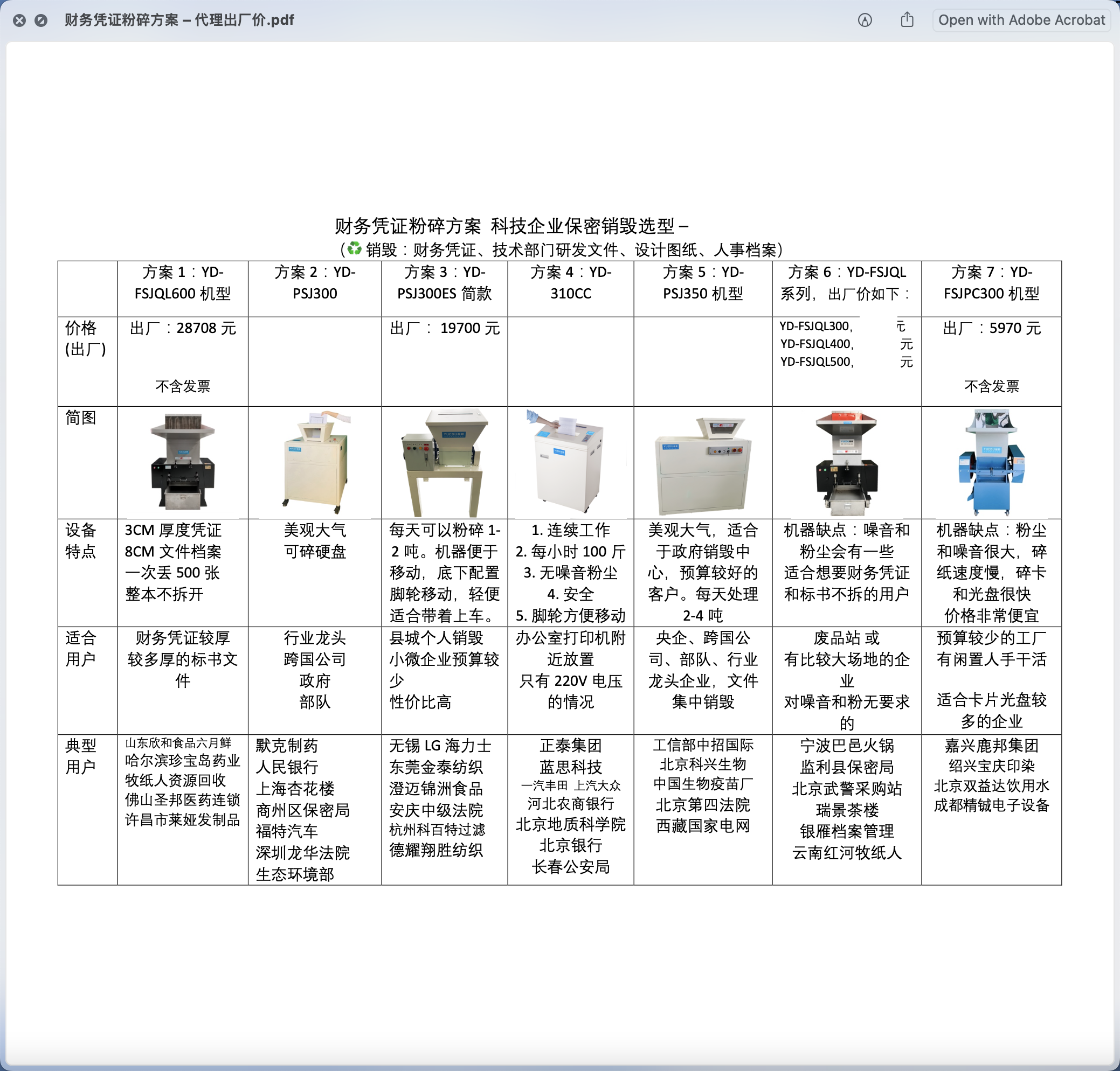 方案1:YD- FSJQL600機型 | 方案2:YD-PSJ300 | 方案4:YD-310CC | 方案5:YD-PSJ350機型 | 方案6:YD-FSJQL系列,分別如下: | 方案7:YD-FSJPC300機型 | ||