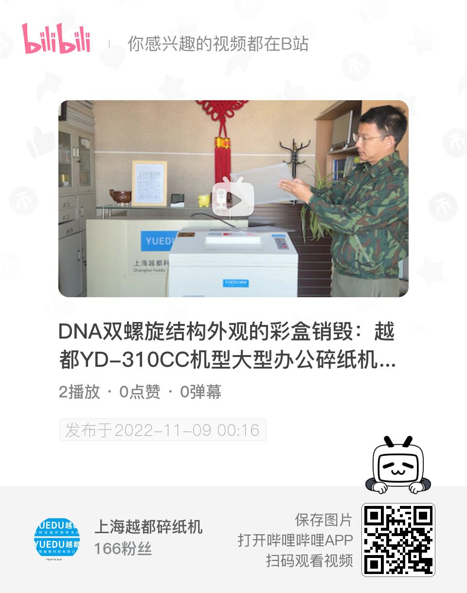 查看銷(xiāo)毀視頻:【DNA雙螺旋結(jié)構(gòu)外觀的彩盒銷(xiāo)毀:越都YD-310CC機(jī)型大型辦公碎紙機(jī),粉碎彩盒包裝箱,順豐速運(yùn)包裝盒子,EMS和順豐快遞包裝袋,完全銷(xiāo)毀裝有紙張的透明塑料文件-嗶哩嗶哩】 https://b23.tv/Ic7q2V8